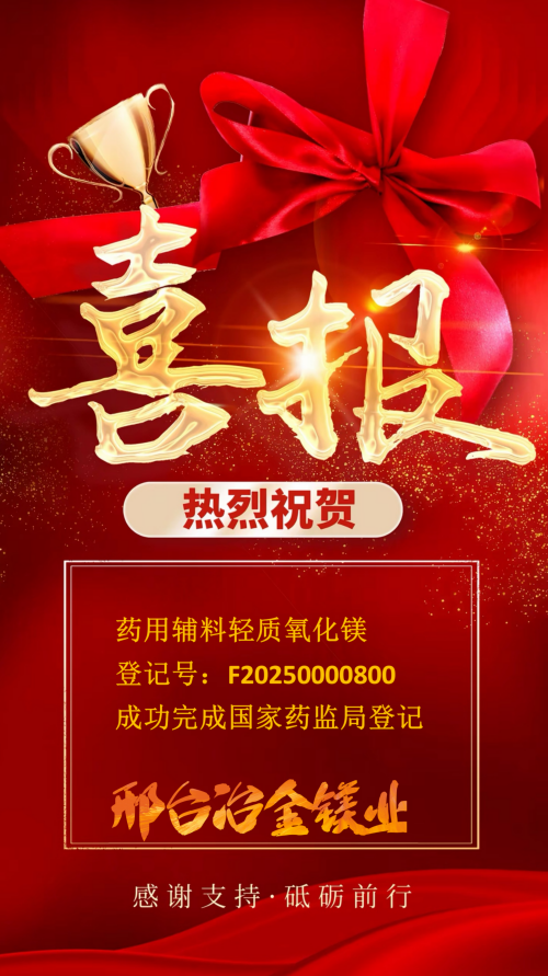 喜報!冶金鎂業 藥用輔料用輕質氧化鎂產品 成功完成國家藥監局登記注冊