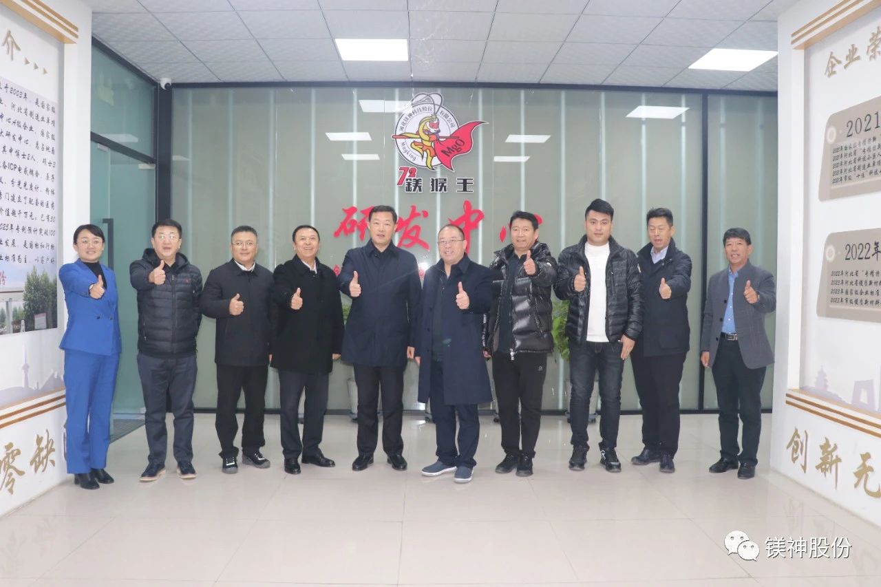 11月13日,遼寧省大石橋市市委書記王殿豐一行蒞臨河北鎂神科技股份有限公司(以下簡稱“鎂神科技”),鎂神科技董事長孫文帶領公司高管熱情接待,并陪同參觀了榮譽室、研發中心、生產車間和倉庫。此次交流旨在加強兩地企業間的合作,推動產業發展和技術創新。