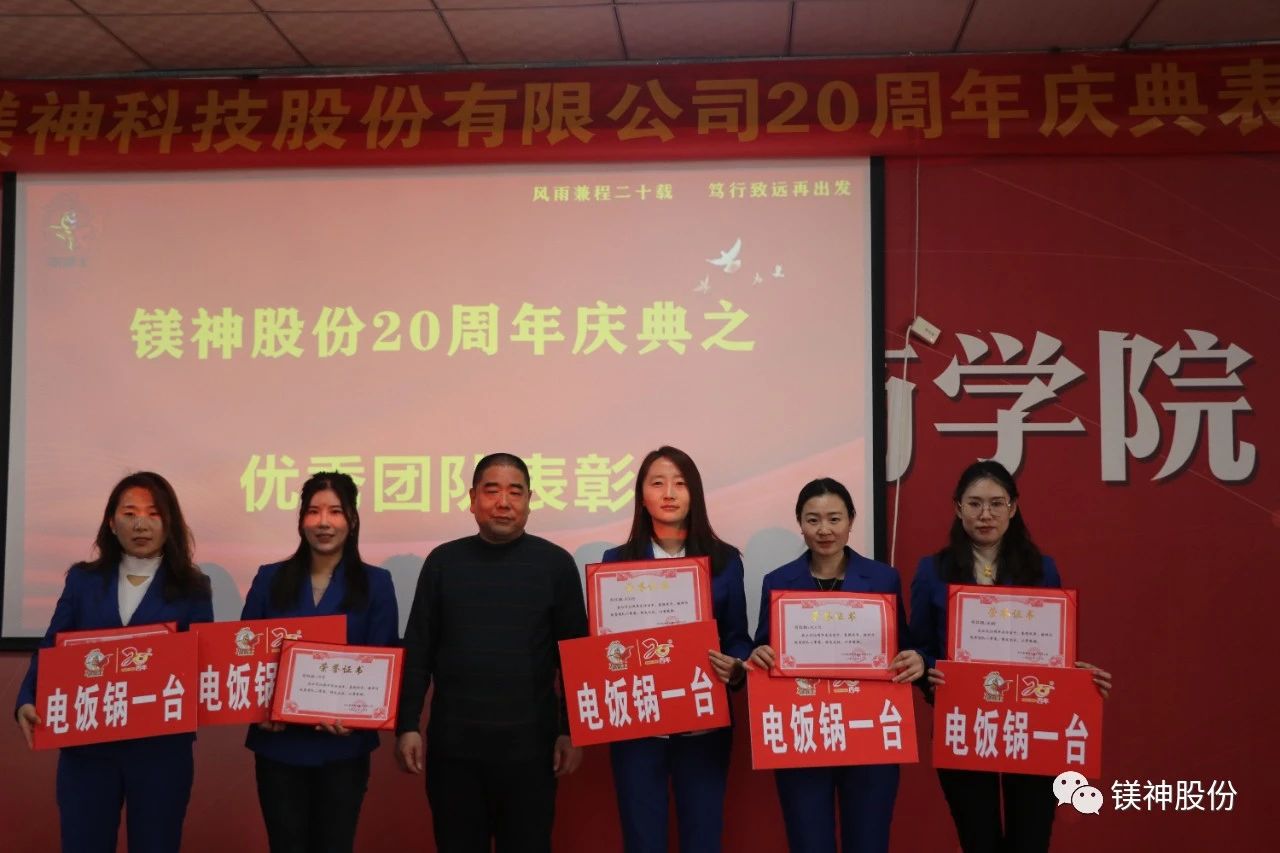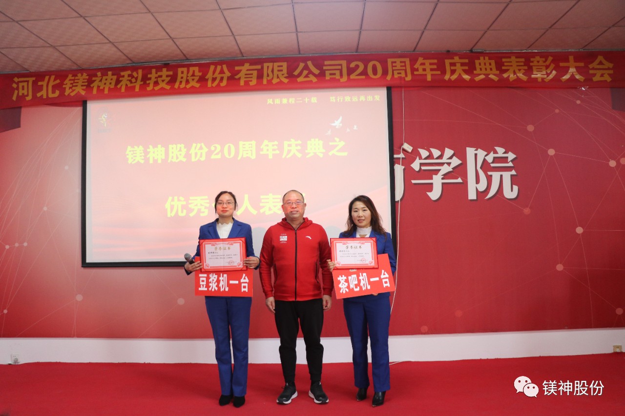 2023年10月,我們先后舉行了老員工表彰大會、“創新引領發展,應用贏得未來”中國鎂鹽協會技術論壇暨鎂神科技20周年慶典、“合作共贏、攜手未來”河北鎂神科技股份有限公司20周年慶典暨大客戶交流活動。