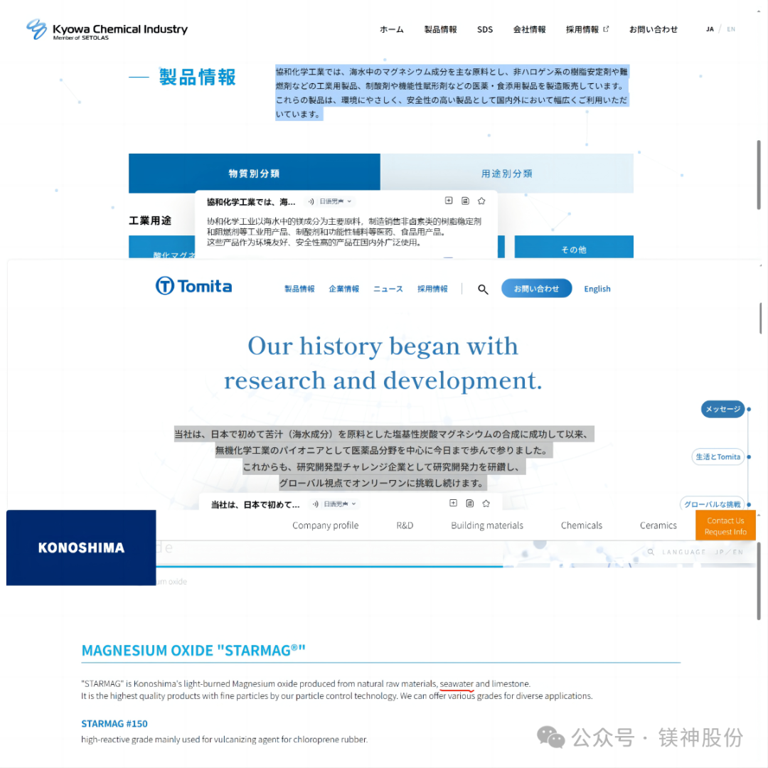 日本相關(guān)鎂鹽企業(yè)官網(wǎng)宣傳產(chǎn)品來(lái)自于海水
