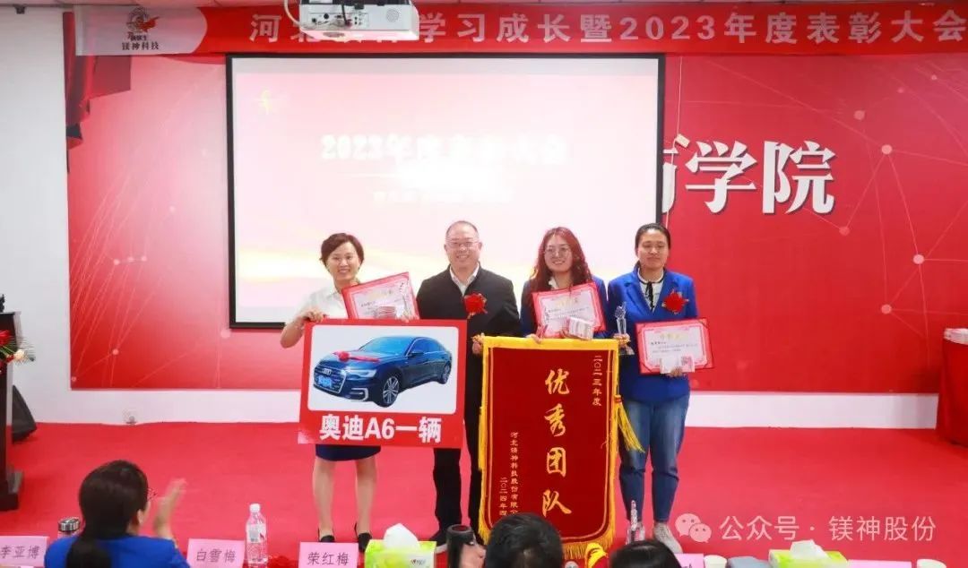 4月19日,河北鎂神科技股份有限公司2023年度表彰大會圓滿落幕,共發(fā)放獎勵600余萬,其中提成發(fā)放180余萬,發(fā)放優(yōu)秀員工、干部和團隊獎金119萬,專項獎勵發(fā)放137萬,分紅發(fā)放160萬。現(xiàn)金560余萬,另發(fā)放奧迪A6一輛!